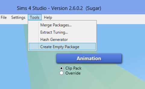 S4S를 켜주신 후 상단에서 Tools - Create Empty Package 를 선택해주세요.