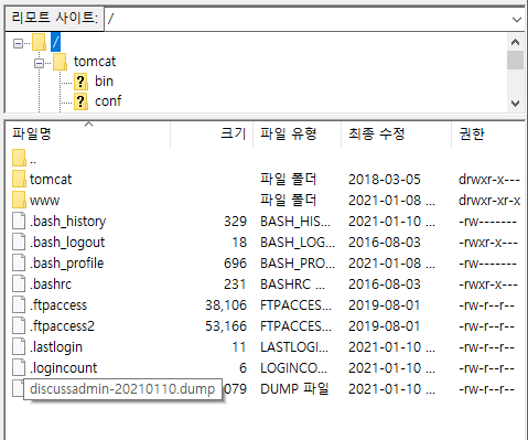 확인해보니 확장명이 dump로 다운로드 받아졌다. 더블클릭해서 로컬 디렉토리에 다운로드했다.