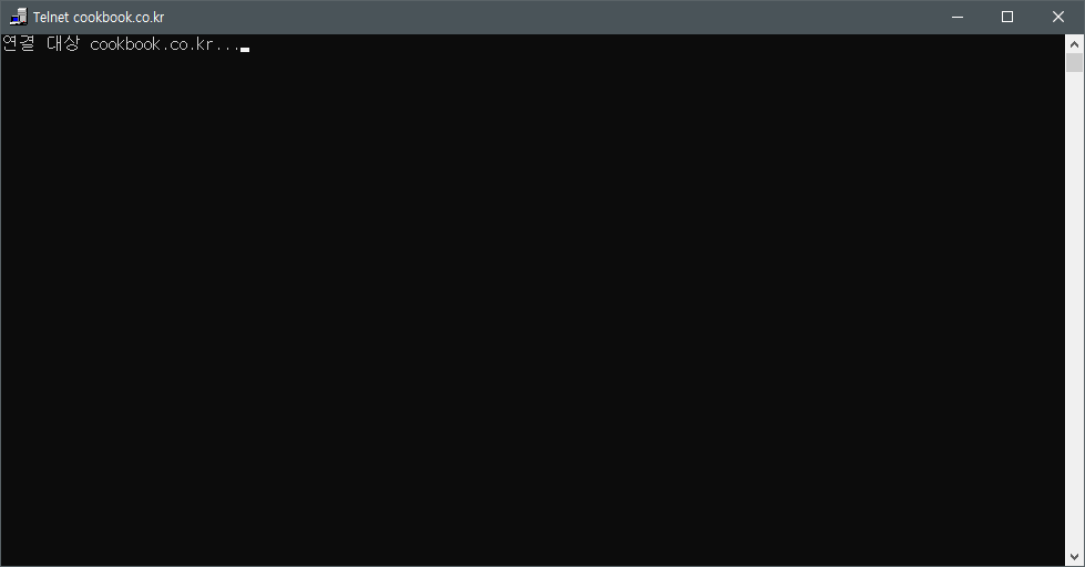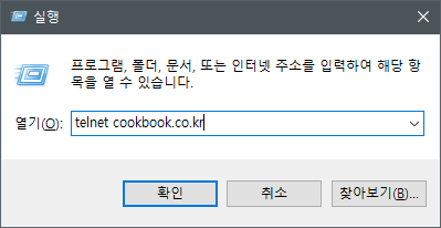 Win + R 누른 후 telnet cookbook.co.kr 입력