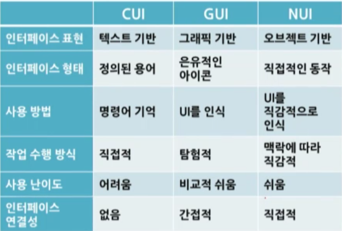 - 사람의 동작이나 음성 등으로 시스템을 조작하는 인터페이스