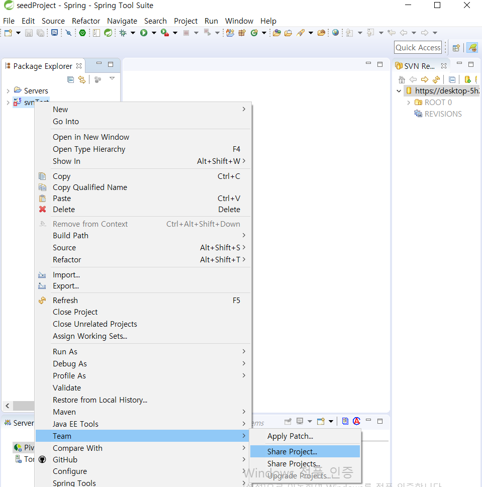 프로젝트 연동 테스트를 위해 스프링 레거시 프로젝트를 생성해준다