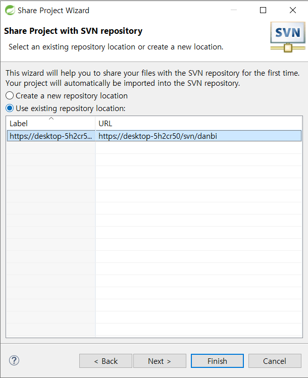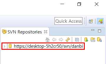 이제 SVN 서버를 URL 로 치고 들어가서 프로젝트가 잘 들어왔는지 확인한다