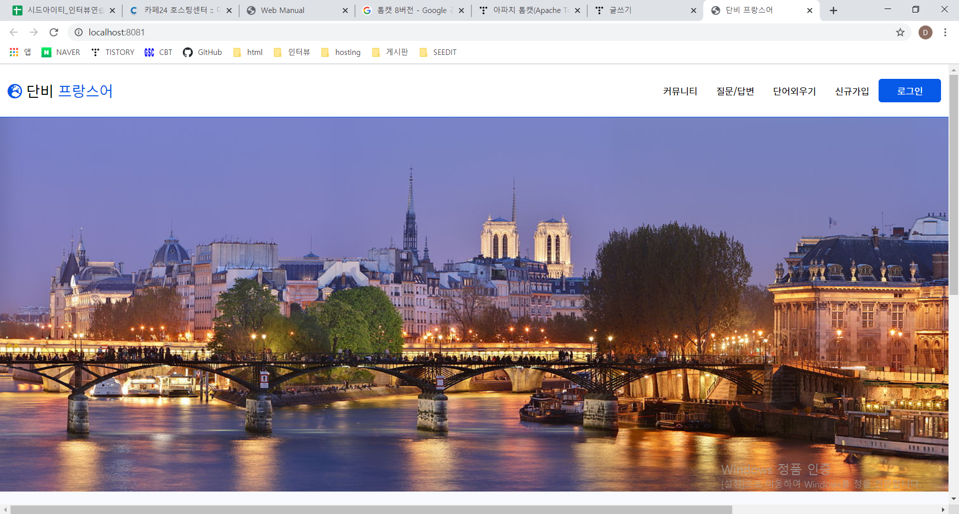개인적으로 스프링을 연습하고자 꾸준히 진행하고 있는 단비 프랑스어 프로젝트를 카페24를 통해서 도메인을 구입하고 호스팅을 했었다. 그런데 기존의 Oracle 데이터베이스를 MySQL로 마이그레이션 하는 과정에서 문제가 있었는지 위처럼 페이지 접속이 안되기 시작했다. 그래서 뭐가 문제일까 고민하면서 카페24 서버 환경과 프로젝트 환경이 달라서 그런것같아 이 부분을 맞춰봤다.