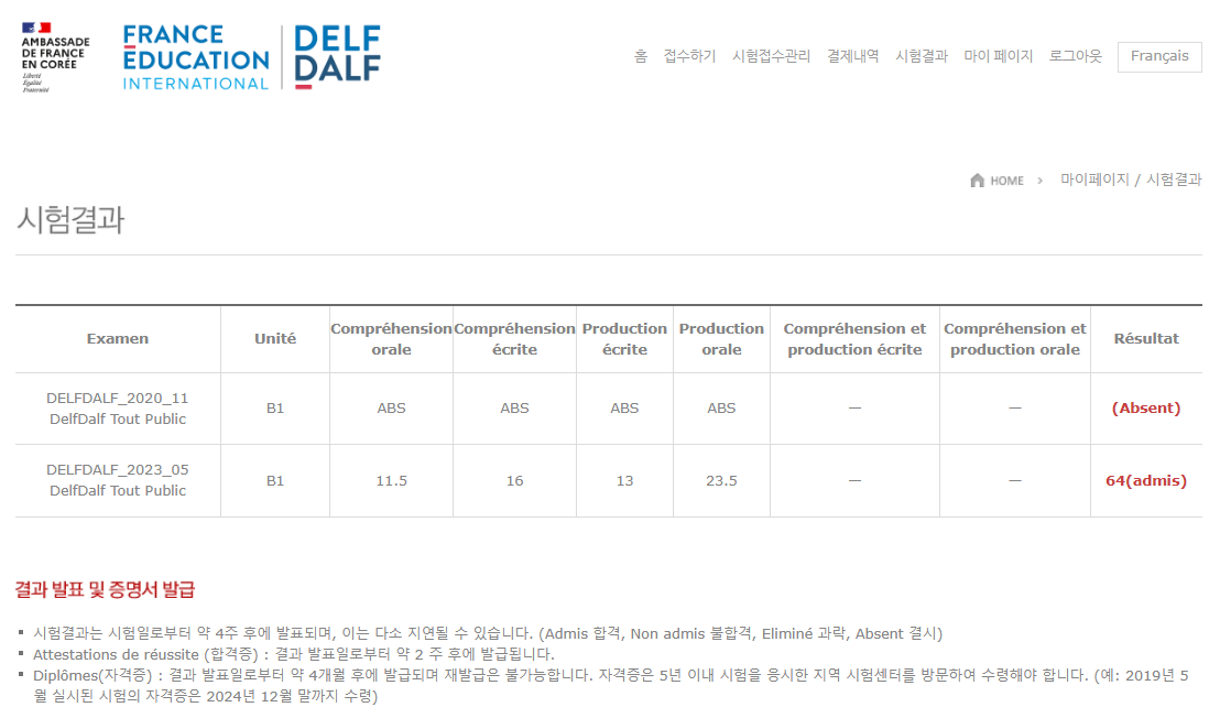[프랑스어] 2023 5월 DELF B1 합격 후기외국어공부/프랑스어_일상 2023. 6. 20. 17:28