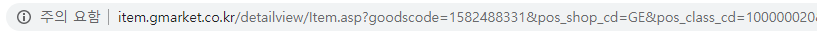 G마켓 신선식품에 있는 아무 음식이나 클릭해서 URL 을 살펴보았다.Item.asp?goodscode=1582488331&pos_shop_cd=GE&pos_class_cd=100000020