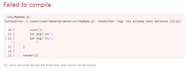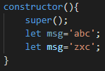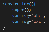 import React from "react" class MyName extends React.Component { static defaultProps = { first:'one', last:'LA', }//end /*생성자*/ constructor(){ super(); var msg='abc'; var msg='zxc'; } render(){ return( <span> MyName.js <br></br> 닉네임 : {this.props.first} {this.props.last} </span> ); } } export default MyName;| 생성자내에서 super(); 을 사용하지 않으면 에러가 난다.
