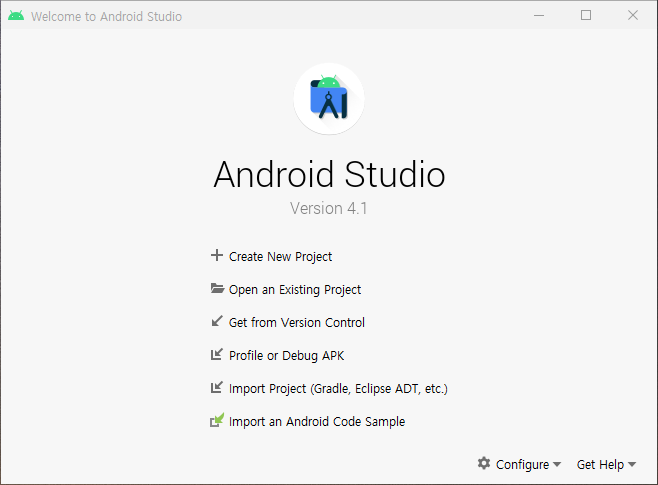 | 안드로이드 설치가 완료된 후 실행되면 오른쪽 하단에서 Configure 를 클릭하고 SDK Manager 를 클릭한다.