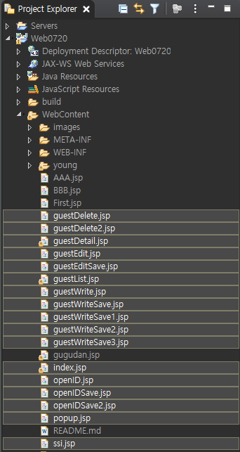 지금까지 제가 만들어둔 JSP 파일은 이렇습니다.