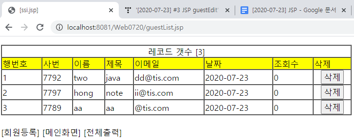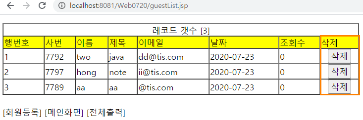 ● guestList.jsp 삭제버튼 추가