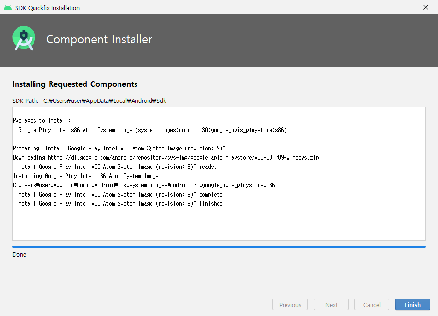 다운로드가 완료 되었다. Finish 버튼 누르기