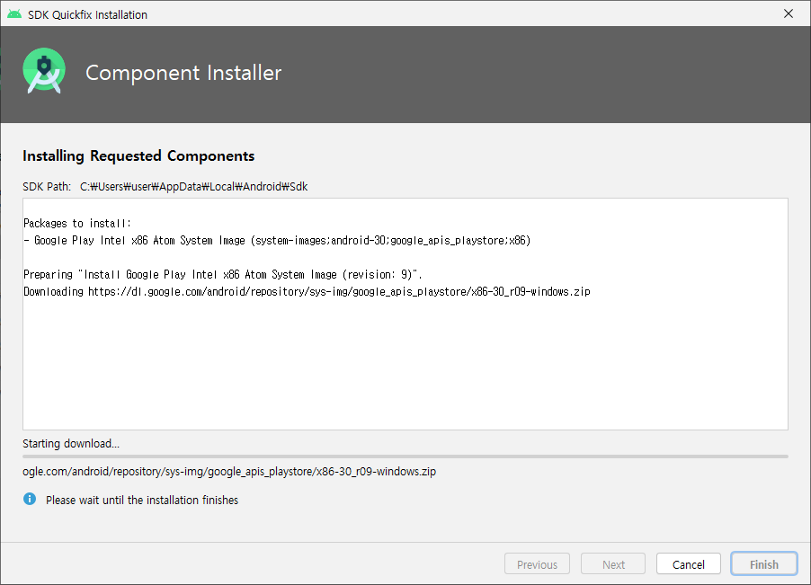 다운로드 과정. 시간이 많이 소요된다.