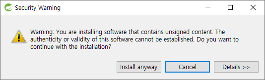 [6] Warnig 이 나오면 install anyway 를 눌러준다.